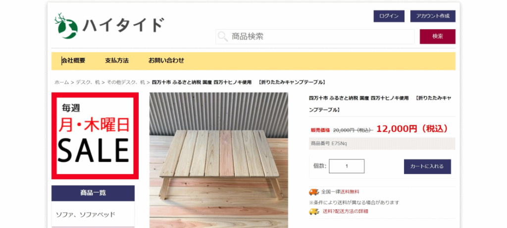 四万十市 ふるさと納税 国産 四万十ヒノキ使用 【折りたたみキャンプテーブル】