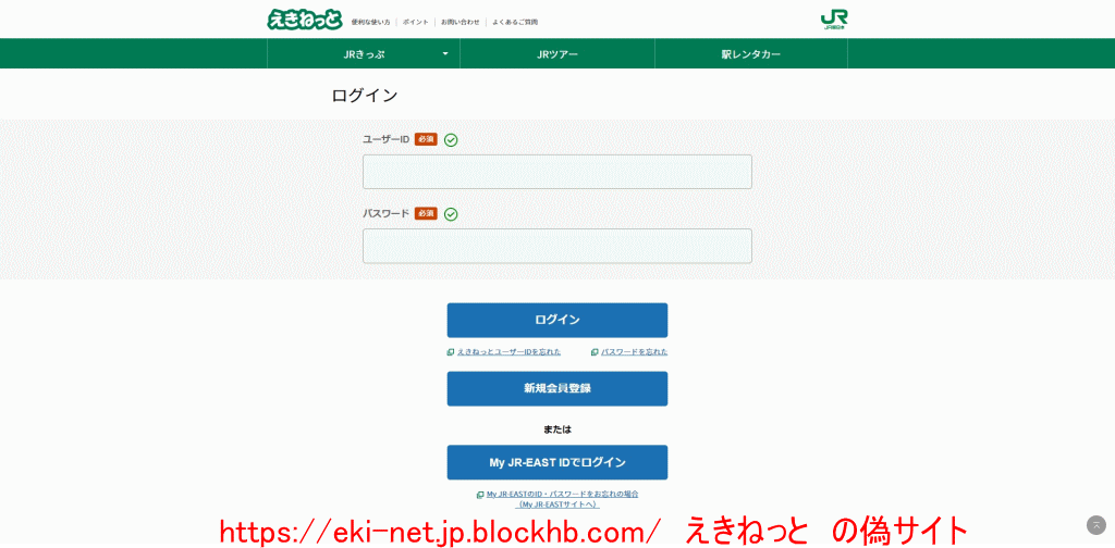 えきねっと と名乗る偽サイト