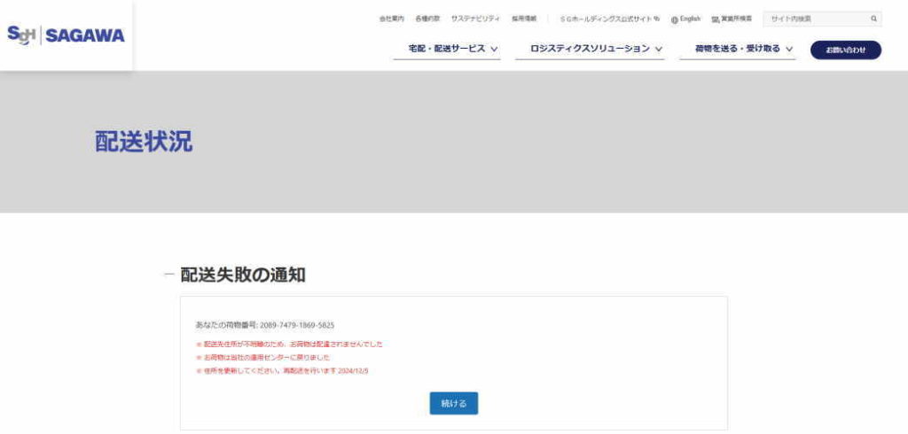 佐川急便株式会社 と名乗るフィシング詐欺サイト
